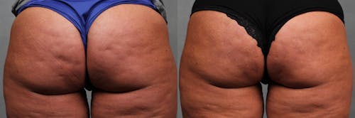 These columns of fat are separated by vertical fibrous bands of reduced elasticity, which create depressions and dimples in the skin, resulting in the appearance of cellulite. The appearance of cellulite can be reduced to varying degrees with invasive procedures, such as liposuction and external ultrasound (performed by Dr. Calobrace or Dr. Quintero). To learn about skin tightening through radiofrequency technology, view our EMTONE® page.