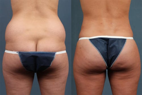 A Brazilian butt lift is a fat transfer procedure performed by Dr. Calobrace or Dr. Quintero as an outpatient procedure using a local or general anesthetic. First, fat is collected using liposuction. The surgeon takes special care to keep as many fat cells alive as possible. Many patients choose to have areas of the body or face sculpted at this time, such as the hips, thighs, or under the chin.